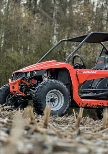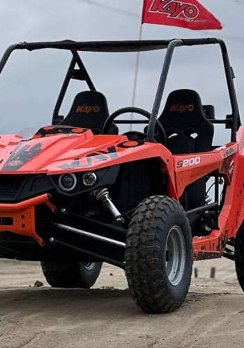 Marzysz o niedrogim, pełnowymiarowym buggy? Szukasz emocji i latania bokiem po polnych drogach? Poznaj się z buggy KAYO S200! Niech nie zmyli Cię niewielka pojemność tego side-by-side. Zastosowanie szpery zamiast mechanizmu różnicowego sprawi, że z uśmiechem na ustach będziesz zakładać kontry podczas uślizgów. Nieskomplikowany (czyli także tani w eksploatacji!) silnik ma wystarczająco dużo mocy, by świetnie się bawić. O bezpieczeństwo dba stalowa klatka, półdrzwi i 4-punktowe pasy bezpieczeństwa. Kubełkowe fotele możesz regulować, tak samo jak kierownicę. Nic, tylko jeździć!