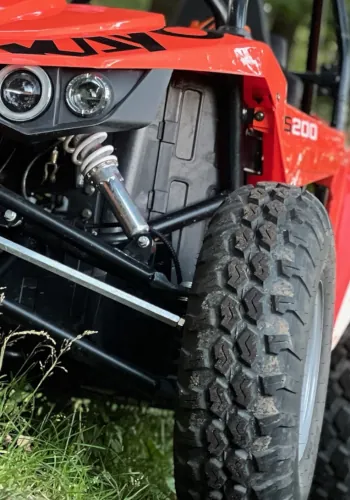 Czterosuwowy, chłodzony powietrzem i wydajną chłodnicą oleju (wspomaganą wentylatorem) silnik o pojemności 200 cm3 może na papierze wydawać się niewielki, ale w praktyce zaskakuje przyjemnym oddawaniem mocy już od najniższych obrotów. Świetnie radzi sobie z buggy S200, oferując nie tylko dynamiczną jazdę, ale także ekonomię. Niskie koszty eksploatacji to coś, co na pewno docenisz.