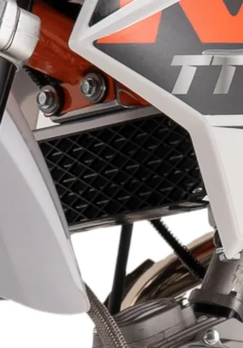 Hydrauliczne hamulce, z dwutłoczkowym zaciskiem przedniego hamulca, pozwalają na precyzyjne dozowanie siły hamowania. Zawieszenie, mimo że nie posiada regulacji, zostało zestrojone w sposób, który oferuje przyczepność i komfort w każdych warunkach – w tym na torach pit bike/motocross. Długość przedniego zawieszenia to 735 mm, a centralnie mocowanego tylnego amortyzatora wynosi 360 mm.